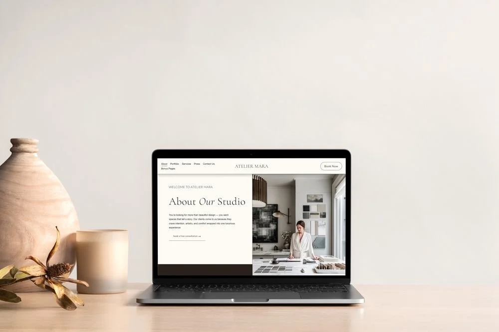 Atelier Mara is a clean, editorial Squarespace template crafted for interior designers ready to showcase their work with confidence. With spacious layouts, refined typography, and an effortless portfolio grid. Highlight your services, share project stories, and guide visitors seamlessly from inspiration to inquiry. Perfect for interior designers, stylists, and creatives who want a website that feels like a beautifully curated space.