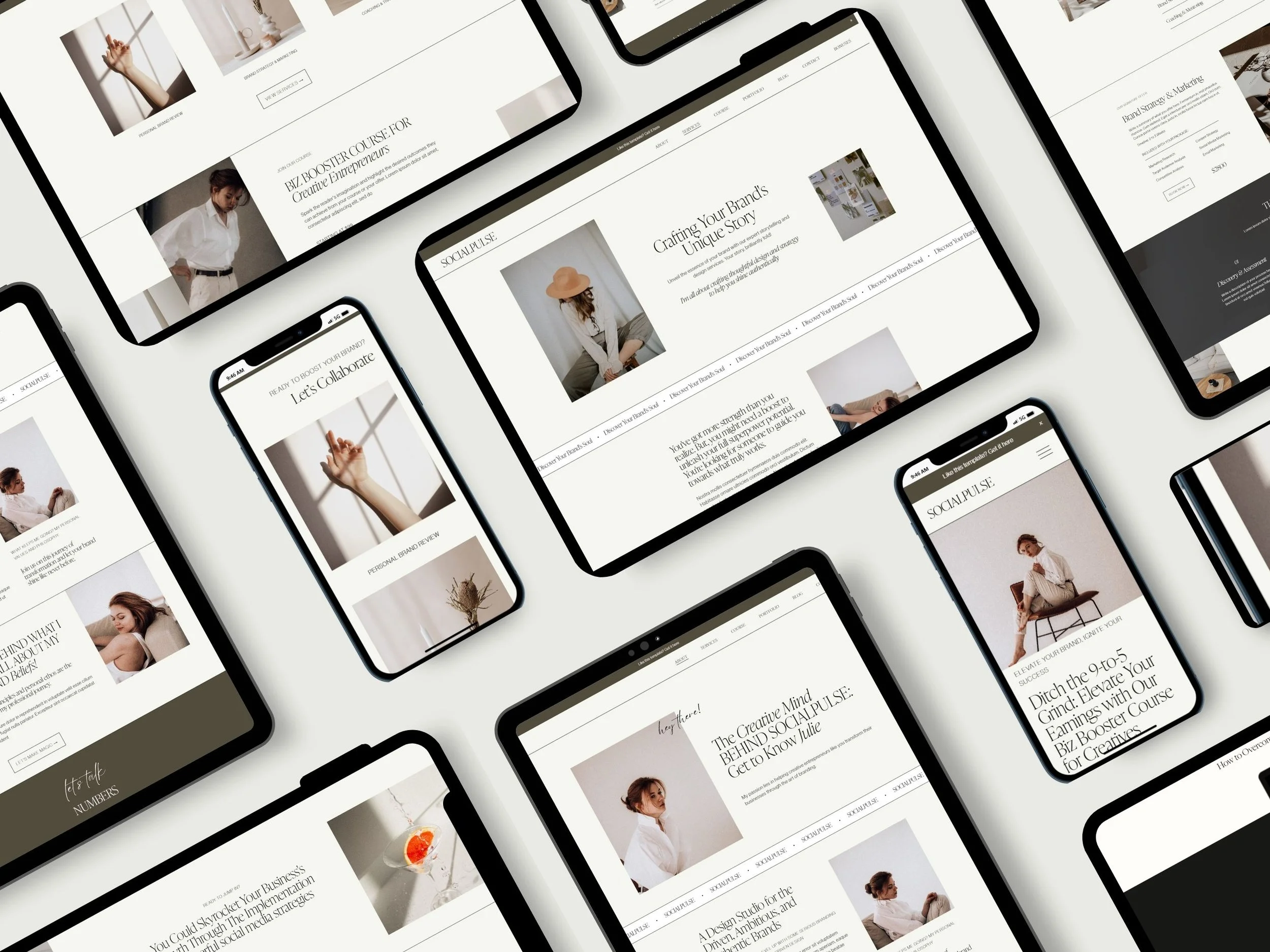 The Socialpulse template is a clean and minimal website that's perfect for life coaches, course creators, and health and wellness service providers. It comes with a course sales page to help you showcase your course and guide potential clients seamlessly through your offerings.